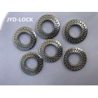 預緊力防松效果比碟形墊圈要好、在歐洲鐵路工業領域被大量采用、表面齒紋增加了防松系數! SK墊圈多種齒紋設計、根據墊圈接觸面尺寸不同齒紋也會有所變