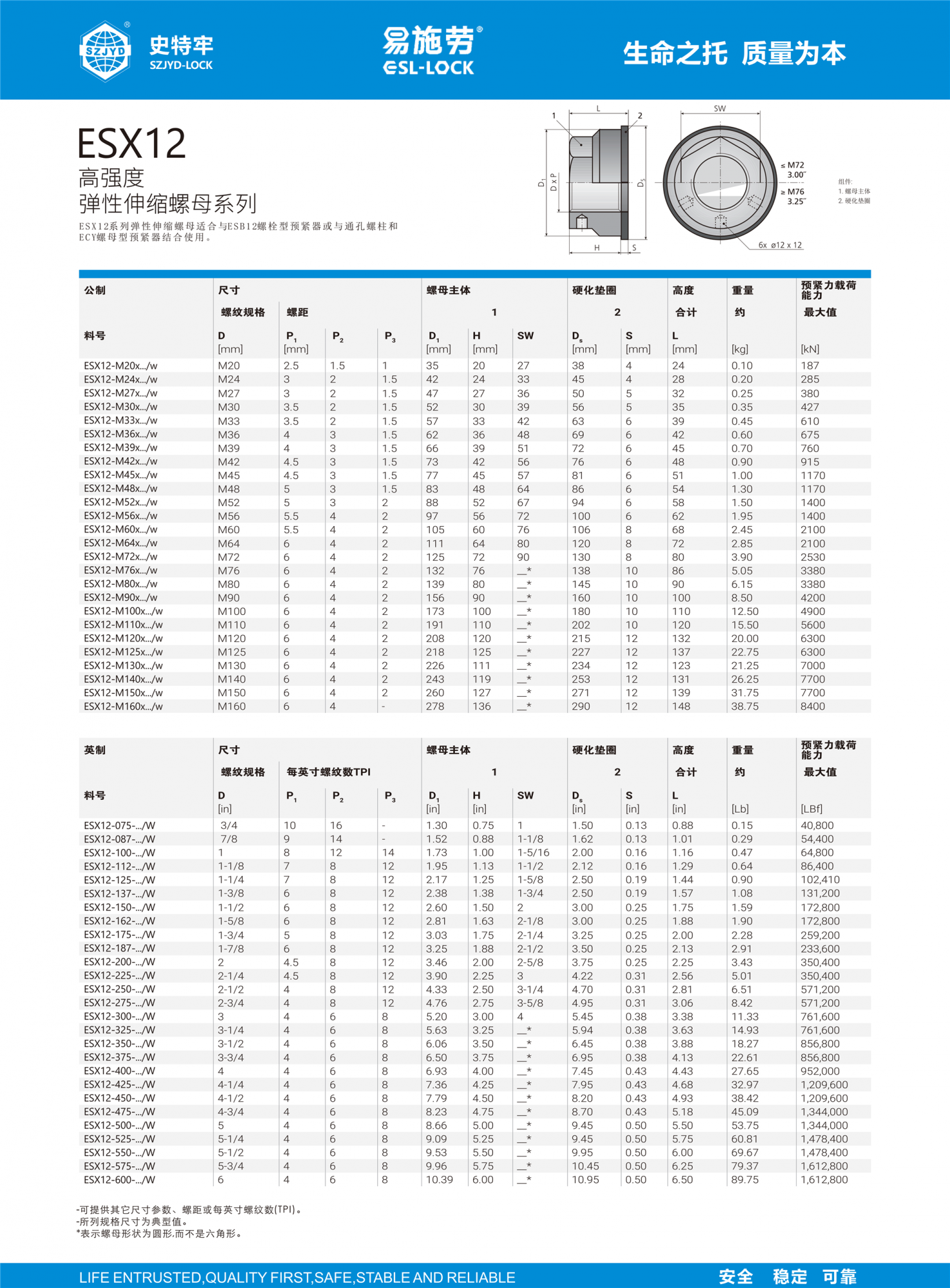 多頂推超級預(yù)緊器,可在很小空間安裝,使用簡單工具即可輕松預(yù)緊,節(jié)省安裝時間,ESL-LOCK品牌易施勞超級螺母具有完全的防松鎖緊功能,可多次拆卸重復(fù)使用。特別適用于M24規(guī)格以上大型螺栓鎖緊!一擰永固,永不松動!使用常規(guī)格為合金材料及特殊不銹鋼合金材料以及鎳基合金材料!更多了解歡迎咨詢我們.....